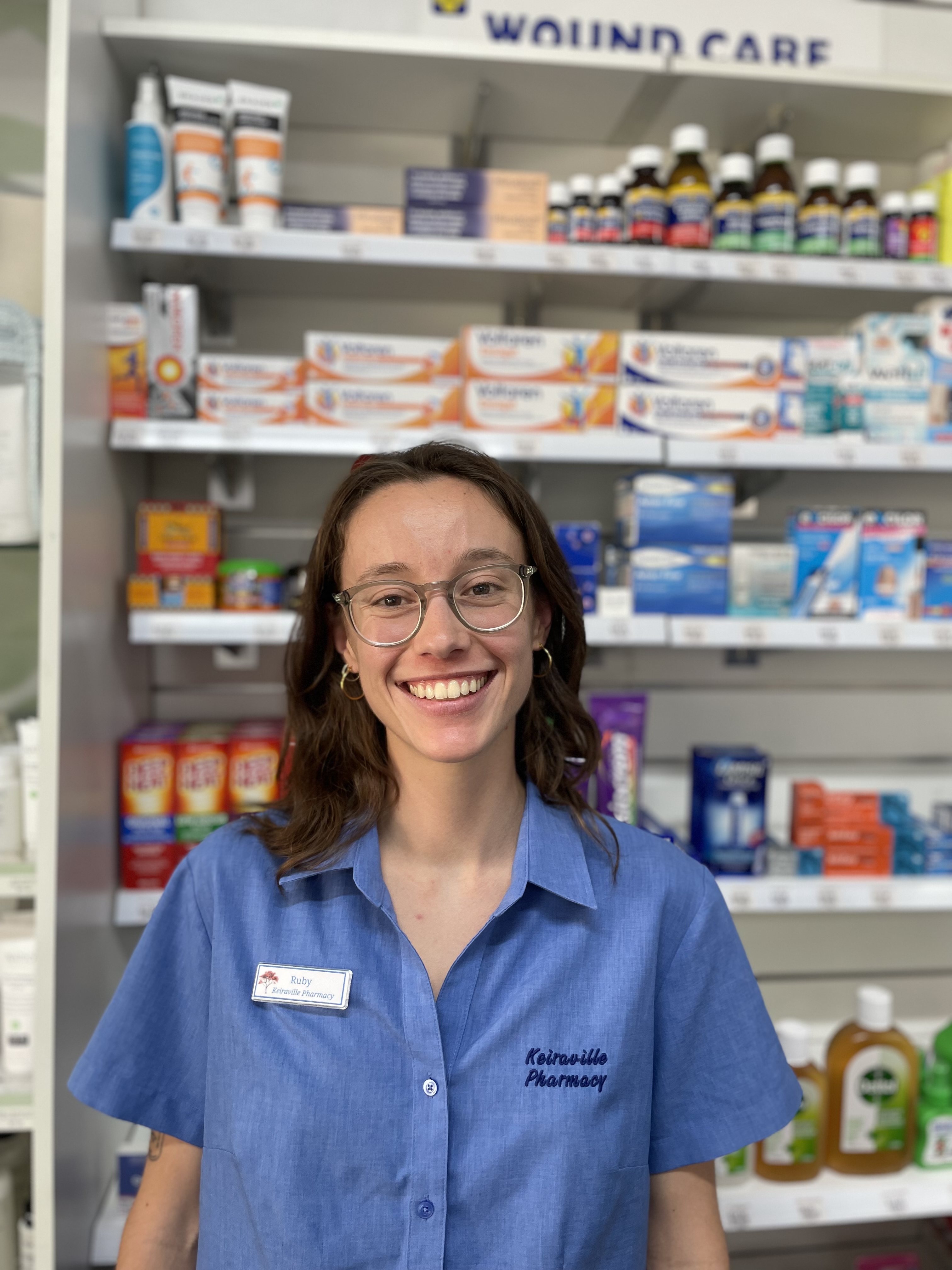 Ruby was born in Tasmania and grew up in Canberra where she first began working in pharmacy. Ruby completed a Bachelor of Medical Science in 2023 and realised her passion for community health. She moved to Wollongong in 2025 to commence a Bachelor of Nursing and has been working at Keiraville Pharmacy ever since.